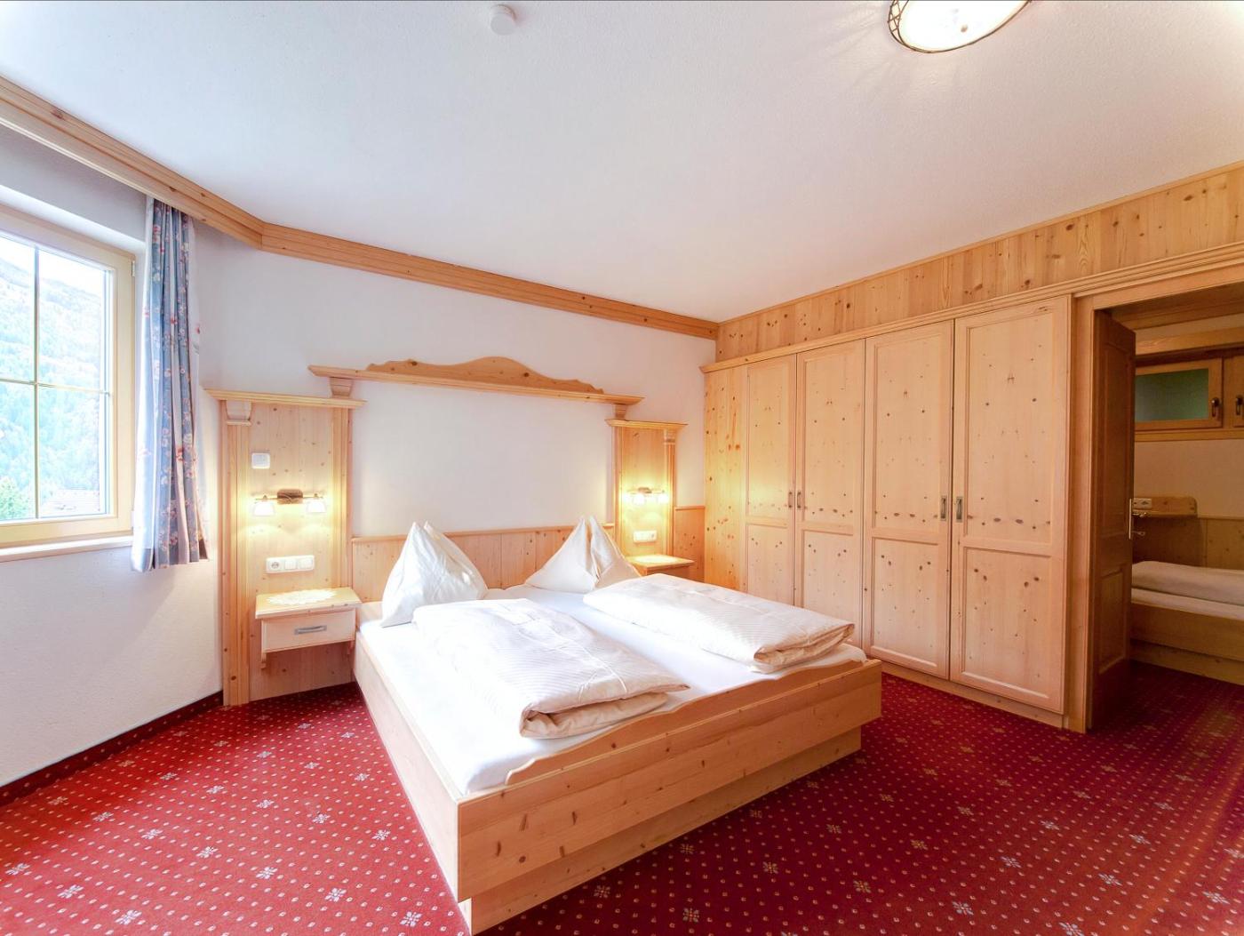 The cosy rooms are furnished with lots of local wood such as stone pine and spruce. They offer fantastic views of the surrounding mountains.