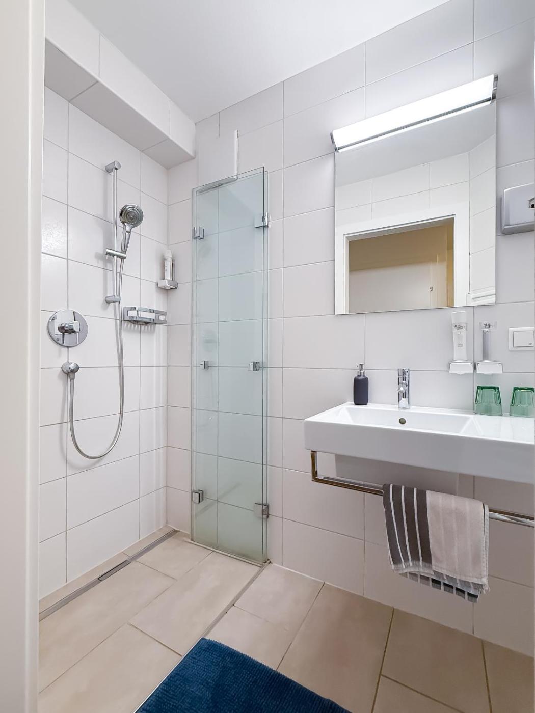 Family Room. The spacious family room has a private bathroom, a washing machine, soundproof walls, as well as a seating area with a flat-screen TV. The family room offers a wardrobe, an electric kettle, heating, as well as a balcony. The unit has 2 beds.