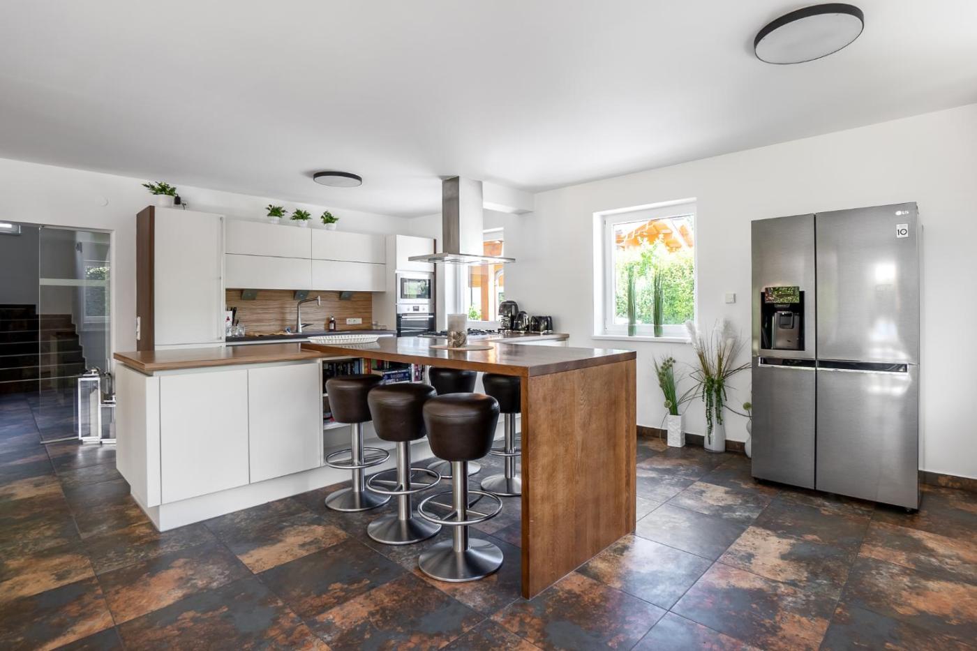 Five-Bedroom House. Guests will have a special experience as this holiday home provides a sauna. The holiday home has 5 bedrooms, 7 bathrooms and a kitchen. The holiday homes kitchen is available for cooking and storing food. Boasting a terrace with garden views, this holiday home also offers a washing machine and a flat-screen TV. The unit has 7 beds.
