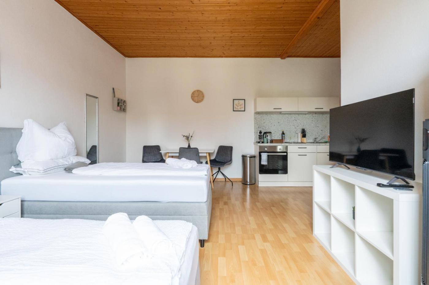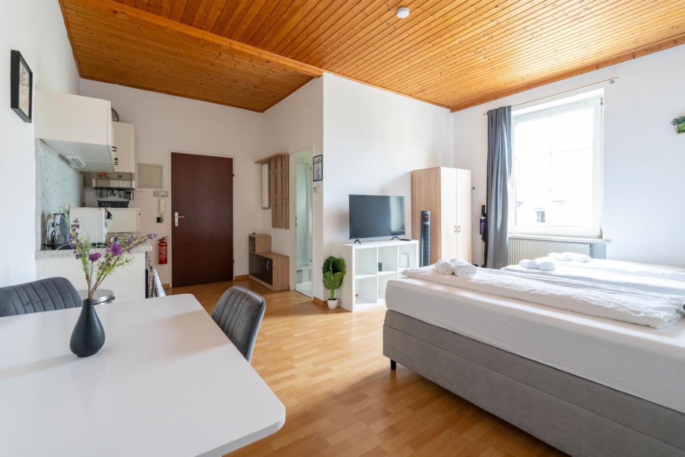 One-Bedroom Apartment. In the fully equipped kitchen, guests will find a stovetop, a refrigerator, kitchenware and an oven. The apartment provides a flat-screen TV with streaming services, a tea and coffee maker, a dining area, a wardrobe as well as ancourtyard view. The unit offers 2 beds.