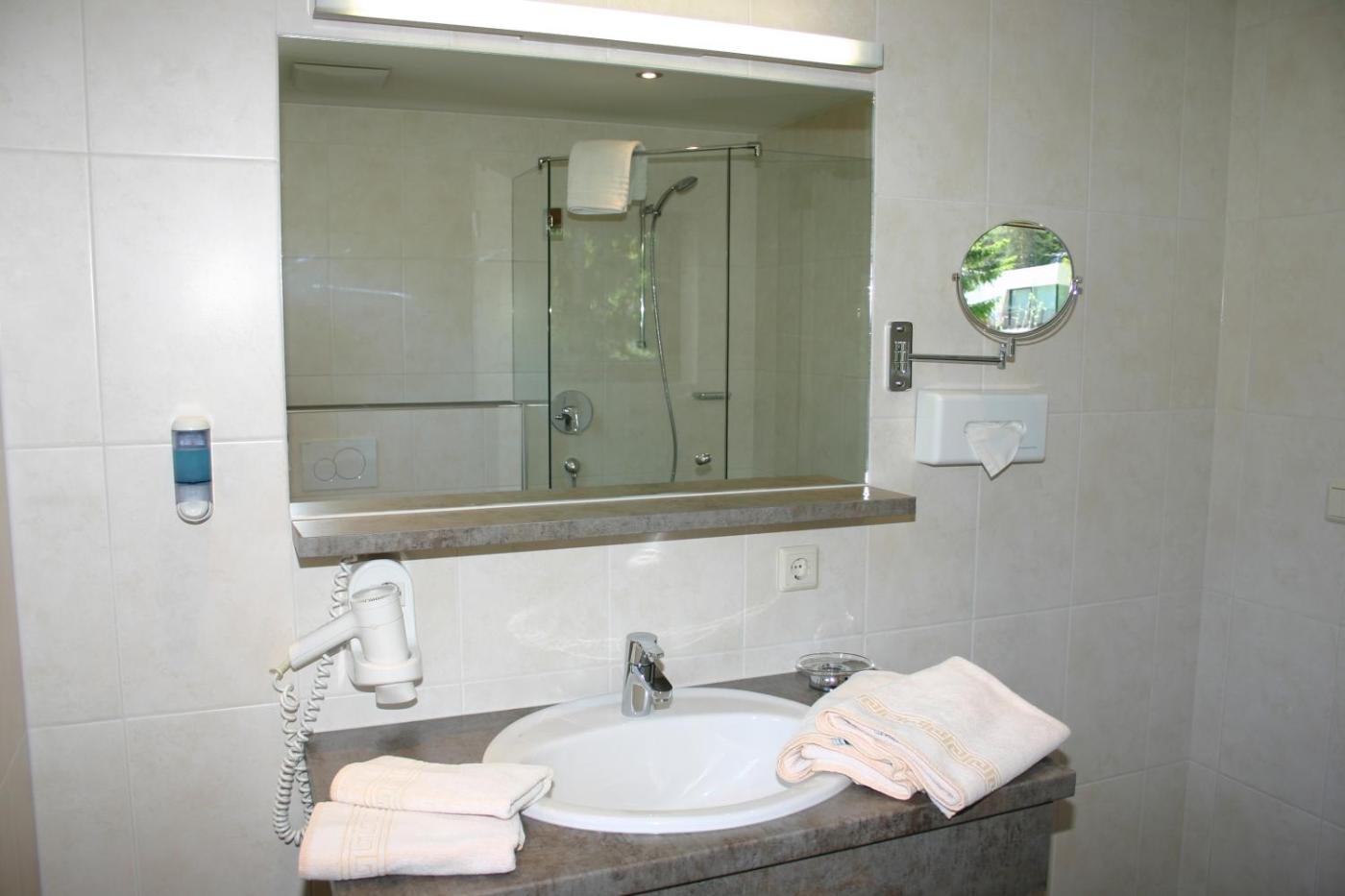 The rooms are furnished in a modern Tyrolean style and feature satellite TV, a seating area, and a bathroom. Some rooms feature a balcony.
