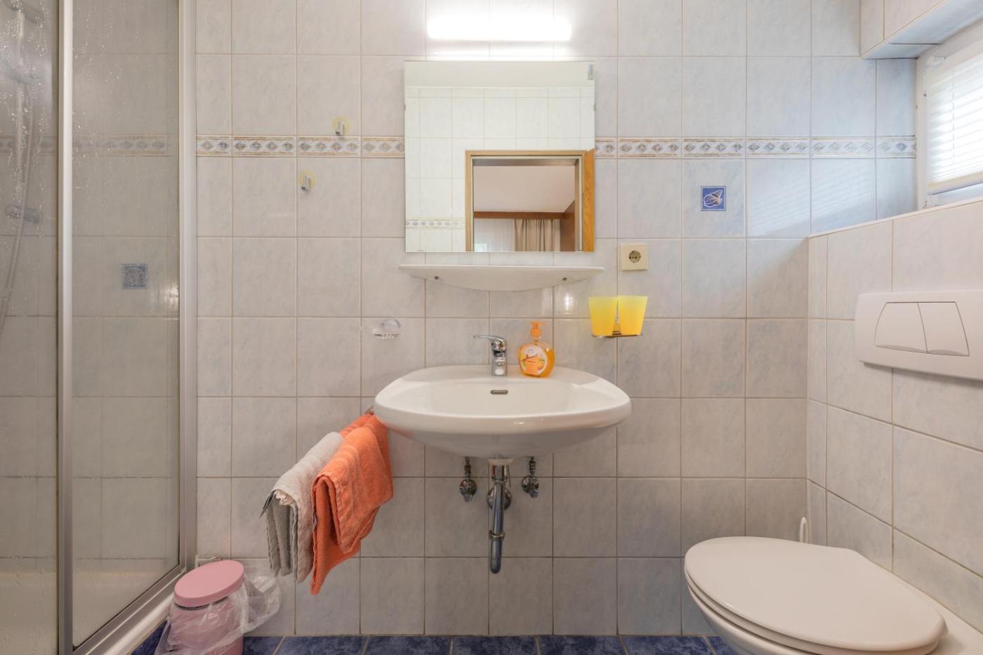 Apartment with Mountain View. Rustically furnished apartment with 2 balconies overlooking the mountains, a kitchen, a bathroom with a shower and a toilet, 2 bedrooms featuring a flat-screen TV with satellite channels each. Please note that the dining table is in one of the bedrooms. On request, fresh bread rolls can be delivered every morning. ;