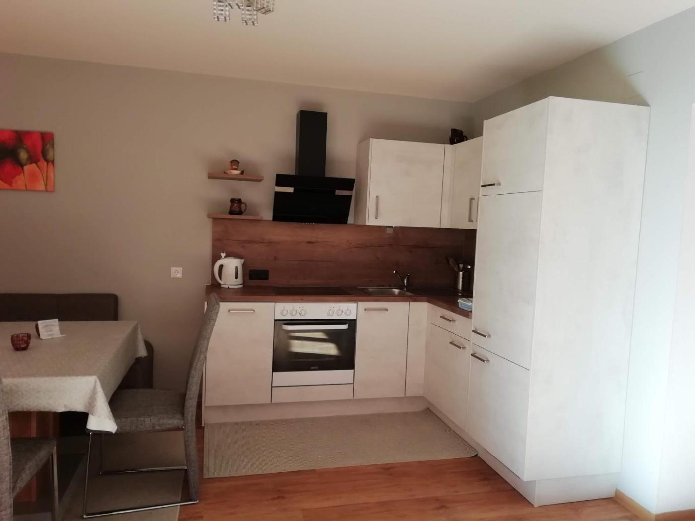 Apartment. This apartment consists of a kitchen, a seating area, 1 separate bedroom and 1 bathroom with a shower and a hairdryer. Guests can make meals in the kitchen that is equipped with a stovetop, a refrigerator, kitchenware and a microwave. The apartment provides a flat-screen TV with satellite channels, a tea and coffee maker, a dining area, a wardrobe as well as mountain views. The unit offers 1 bed.