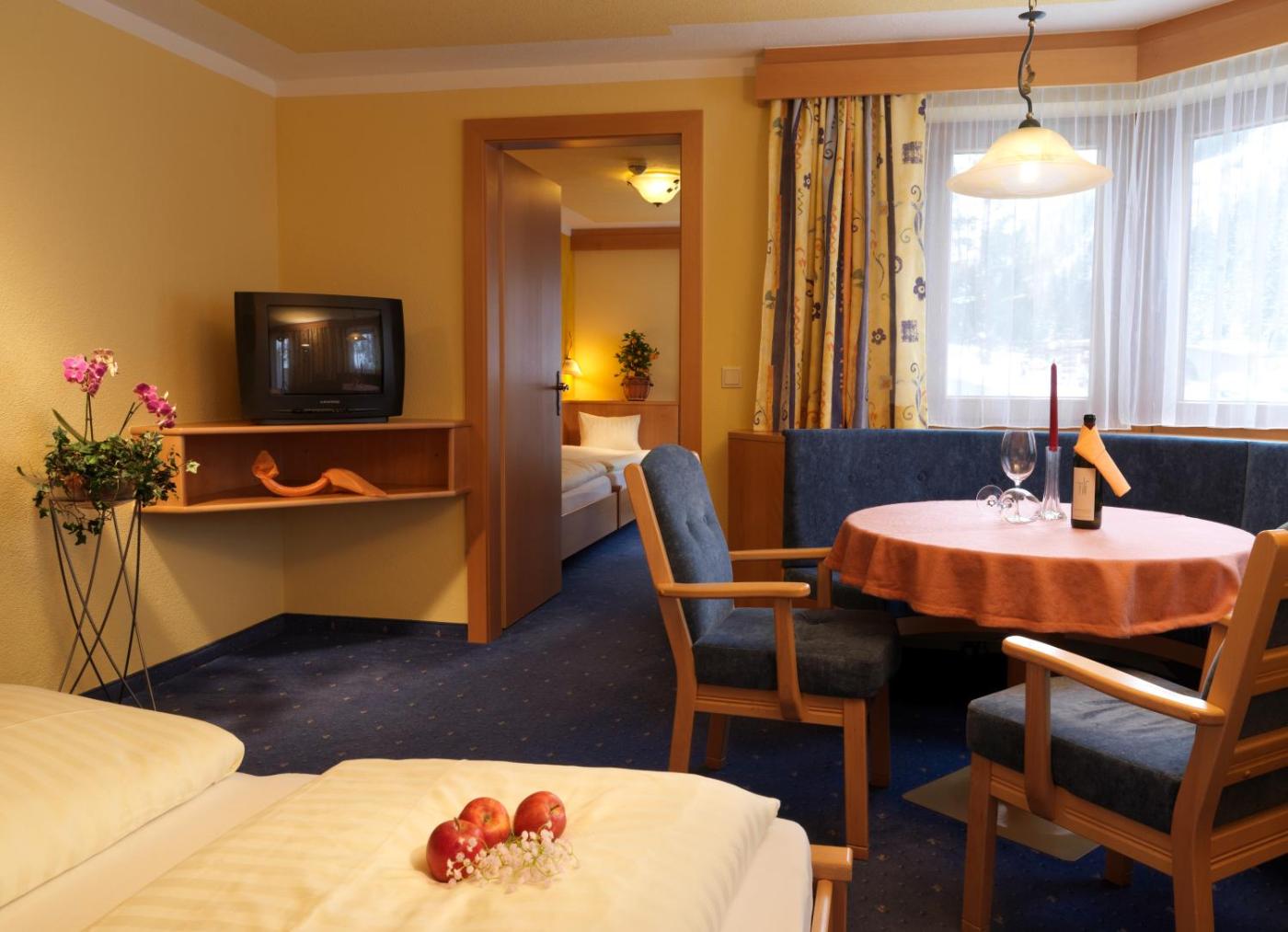 Family Suite. - 2 spacious bedrooms with connecting doors - spacious lobby - kitchenette - balcony with views of the Pitztal Mountains - seating area Please note that extra beds are not available in these rooms. ;