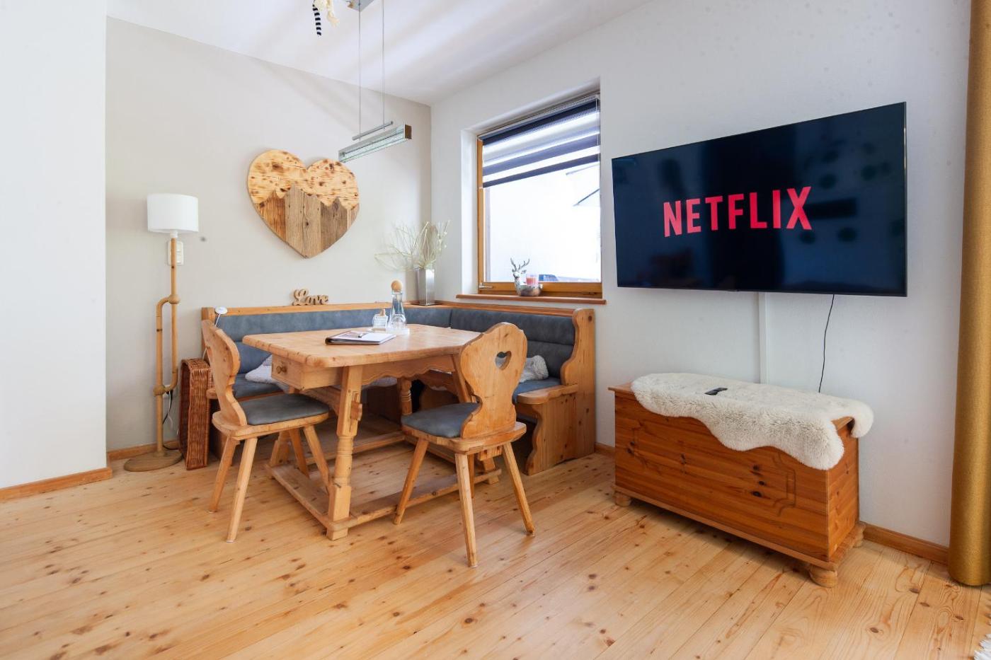 The apartment is equipped with 1 bedroom, 1 bathroom, bed linen, towels, a flat-screen TV with streaming services, a dining area, a fully equipped kitchen, and a balcony with mountain views. Guests can take in the ambience of the surroundings from an outdoor dining area or keep themselves warm by the fireplace on colder days. This apartment is allergy-free and non-smoking.