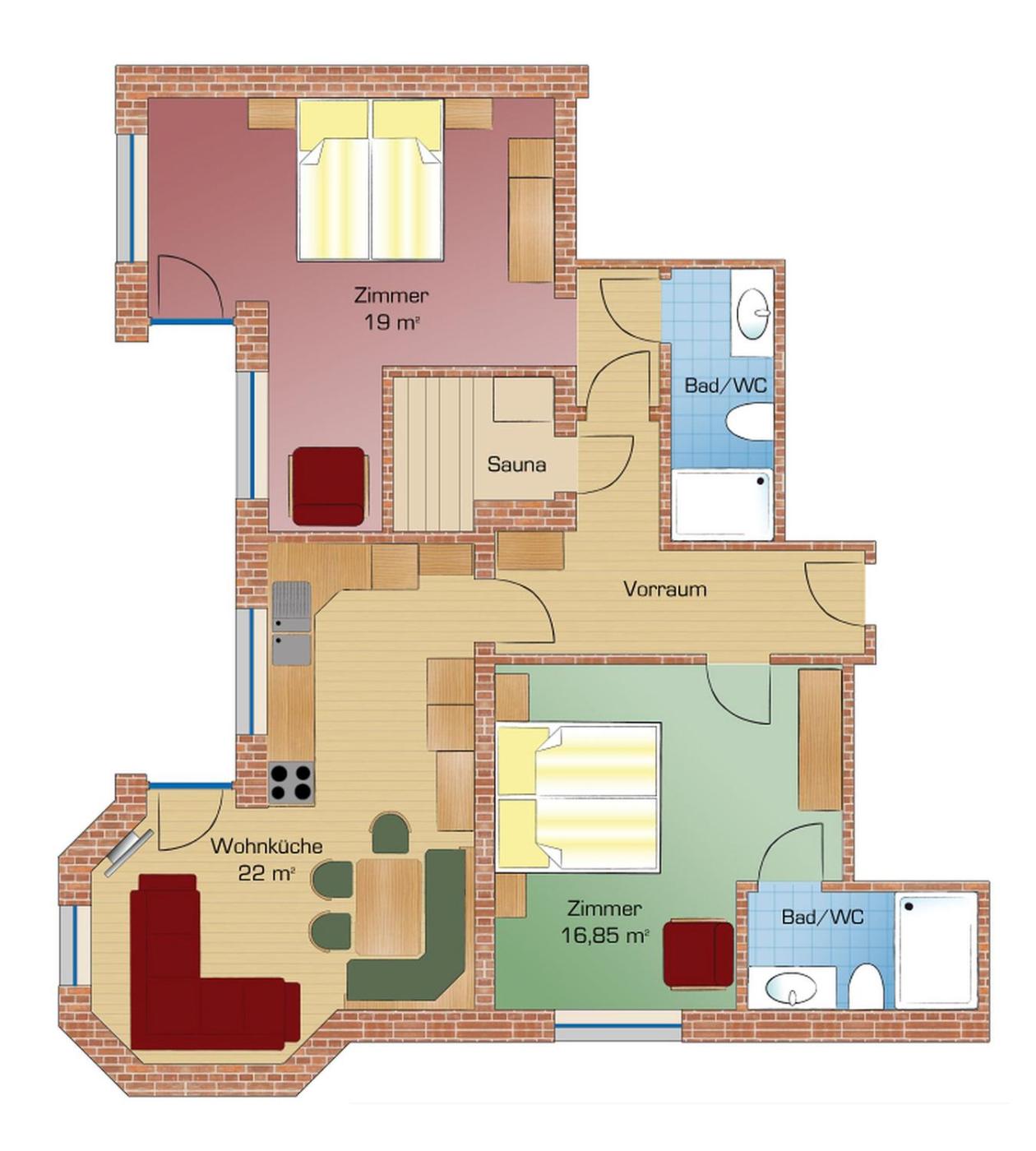 Two-Bedroom Apartment with Sauna. This apartment comes with a balcony, a well-equipped kitchen and a sauna. In addition, it features a living area with a sofa bed and 2 bathrooms. ;