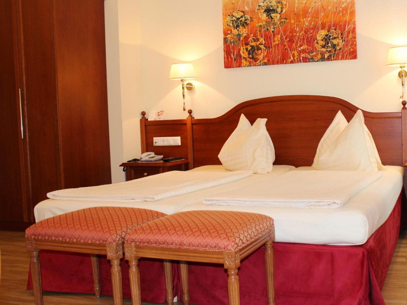 Superior Double Room. These rooms with elegant furnishings have a bathroom with a shower and towel warmer as well as a flat-screen cable TV and a minibar. Some are quietly located facing the courtyard, without noise disturbance from the street. Individually adjustable air-conditioning is available in some rooms for an extra charge. ;