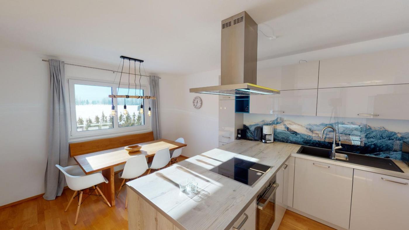 Guests at the apartment can enjoy skiing nearby, or make the most of the garden.